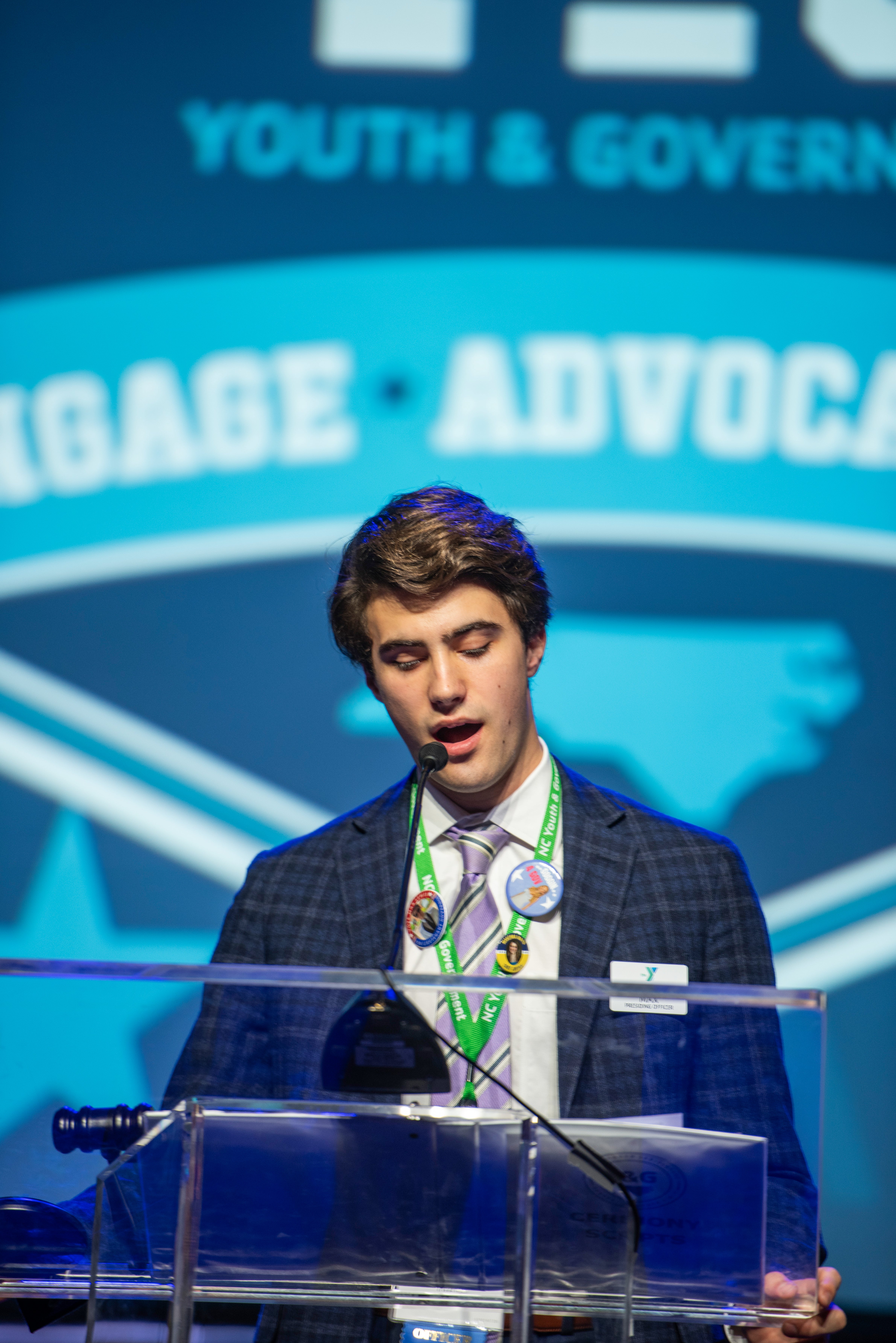 This morning, Max Lewis, a delegate from Cape Fear Academy, woke up the General Session with his strong and engaging promotional video and speech as a candidate for YAG’s 2027 Lieutenant Governor. If there is one word to describe what he, as a prospective Lieutenant Governor, hopes for in the future of Youth and Government, it is unity. He hopes to “use [his] experience as Presiding Officer to ensure the conference will be the continuation of uniting principles.” Lewis promises to give attention to the judicial branch, ensuring that every delegate receives equal representation.